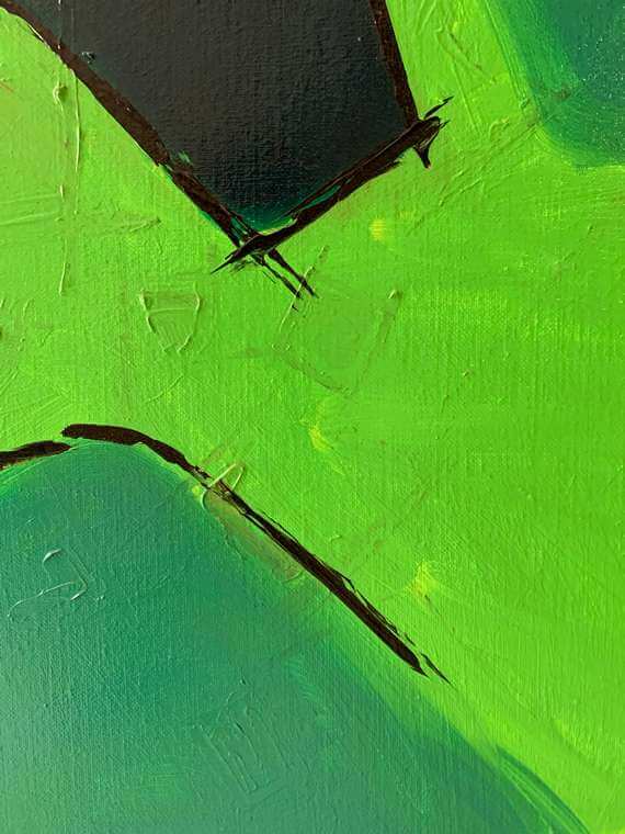 Geleidelijk – en dat sinds 1992 – verdwijnt de bol, groeit de ruimtelijkheid, wordt de abstractie groter. Ruimtelijkheid lijk gezegd en wit winnen aan belang. Geschilderde “slagvelden”, waarin de partijen elkaar doorpriemen, waarin harde verticale banen bewegen, waarin gespannen kleurvelden zich meten met doorleefde borstelstreken, doen soberheid balanceren op bewogenheid. De door kracht en bezieling gedragen gevoeligheid blijft conflictueus. Plastisch handhaaft het evenwicht op doek zich evenwel, niettegenstaande de bewegende vlakken zich vaak fel tegen elkaar opstellen.