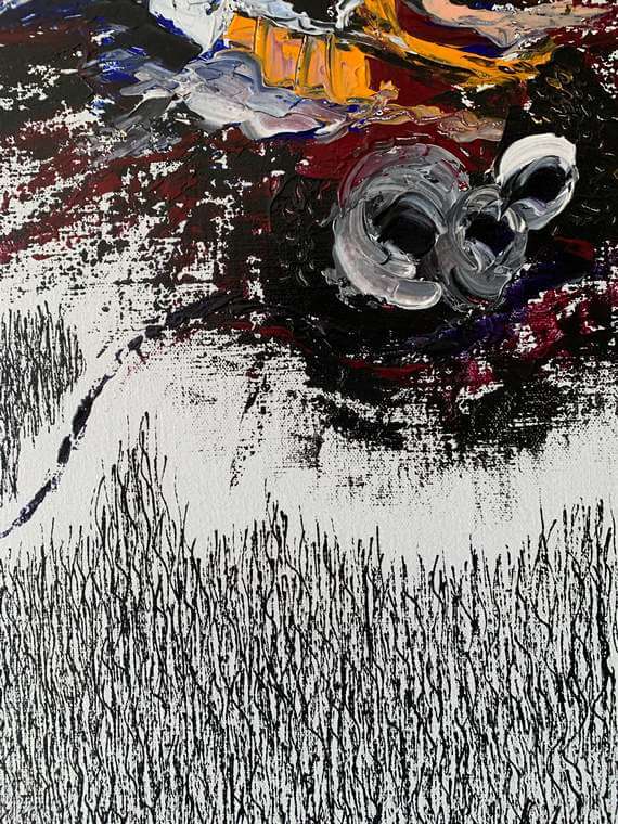 Dit engagement vindt van 1987 af zijn weerslag in de combine-paintings, de schilderijen met koperplaat en andere benagelde elementen. De aanwezigheid van deze aan de schilderkunst “vreemde” materiële toevoegingen: kernen met hun uitwaaierende tentakels, zijn een eerste onmiskenbare aanduiding van zijn impulsieve emotionaliteit in een krachtige visuele beeldentaal.